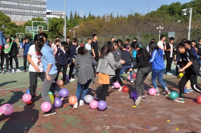 在体育节的传统比赛项目“十人十一足”中,同学和老师们一早便开始进行奔跑技巧、前进节奏等的商讨,参赛选手们巧妙的按照身高等合理排位,以求能够更快地冲向终点。在比赛过程中尽管会有摔倒、会有节奏的不合拍,但是大家依旧没有放弃前进,依旧能够相互鼓励、互相扶持走到终点。第二环节“踩气球”比赛更是将体育节活动推向了第一个高潮。随着比赛的进行,气球的爆破声、观赛同学的欢呼声、参赛同学的惊叹声此起彼伏,同学们都奋勇保护自己队员的球,并努力踩破对手的气球,各队队员都为了集体的胜利而竭尽全力。在第三环节“跳大绳”比赛中,同学们都配合默契,摇绳的同学节奏均匀、力度适中,跳绳的同学更是一气呵成。这次的跳绳比赛由于老师们的加入而变得更加有趣,他们活跃的身影也让同学们见识了老师们不同于课堂上的另一种风采。在第四个环节“50米接力跑步赛”中,同学们的激情依旧高涨,每个集体的表现都十分优异,接力棒传递了青春力量,同时也传递了信任与希望。在第五环节 “躲避球”游戏中,每位同学都积极参与,同学们在紧张的比赛过程中有的能够巧妙的躲避攻击,有的能够找准角度打击对手,比赛的氛围非常活跃,尖叫声一片,将体育节推入又一个高潮。“南水北调”作为此次体育节的新增游戏和压轴活动,自然也是深受同学们的喜爱,活动现场欢呼、掌声不绝于耳。