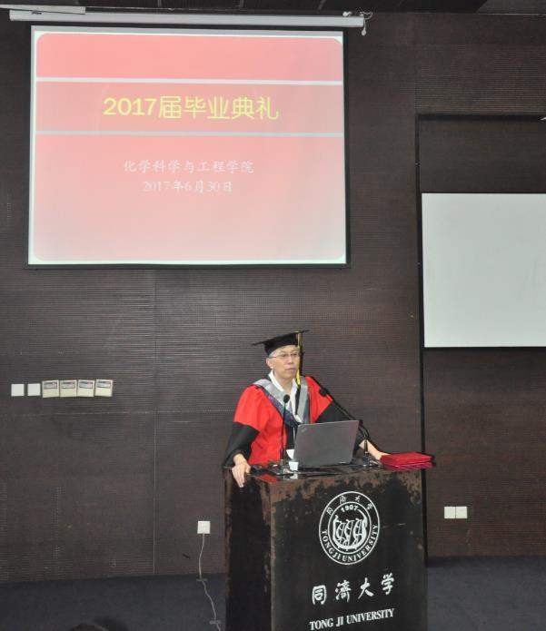 毕业典礼前,与会师生和家长们一起观看了分别由本科和硕士毕业生们精心制作的纪念视频,充满了成长的快乐、生活的幸福和离别的感伤。毕业典礼上,院长张弛教授致辞,他代表学院教师向全体毕业生表示热烈祝贺,祝愿同学们所有的希望都能如愿,所有的梦想都能实现,所有的等候都能出现,所有的付出都能兑现!同时表示学校和学院永远是同学们坚强的后盾和精神家园,请同学们牢记母校,母校的发展也需要每一位校友的共同努力,母校的辉煌是所有同济人共同奋斗的成绩。