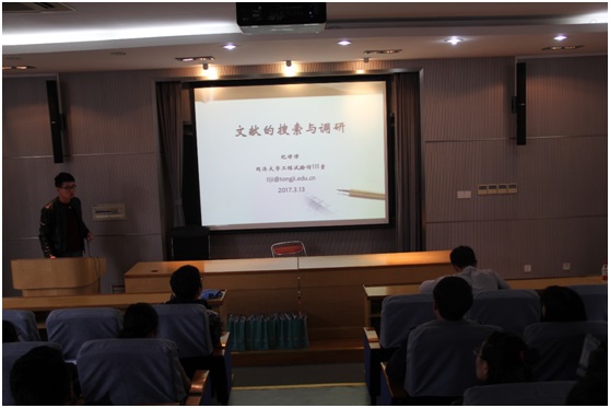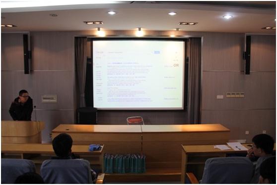 3月17日,三名博士生汪建营、纪律律、肖开捷为同学们分享了文献检索方面的技巧。汪建营讲解了很多获取科研文献的途径,包括通过检索工具获取、不定期刷新本领域的顶级期刊以及跟踪具体文献、具体课题组,来获取相关的科研信息;肖开捷具体介绍了中国知网、Web of Science、SciFinder、EndNote等工具的具体操作;纪律律推荐大家学会使用Google Scholar来进行文献检索,并详细介绍了检索步骤。