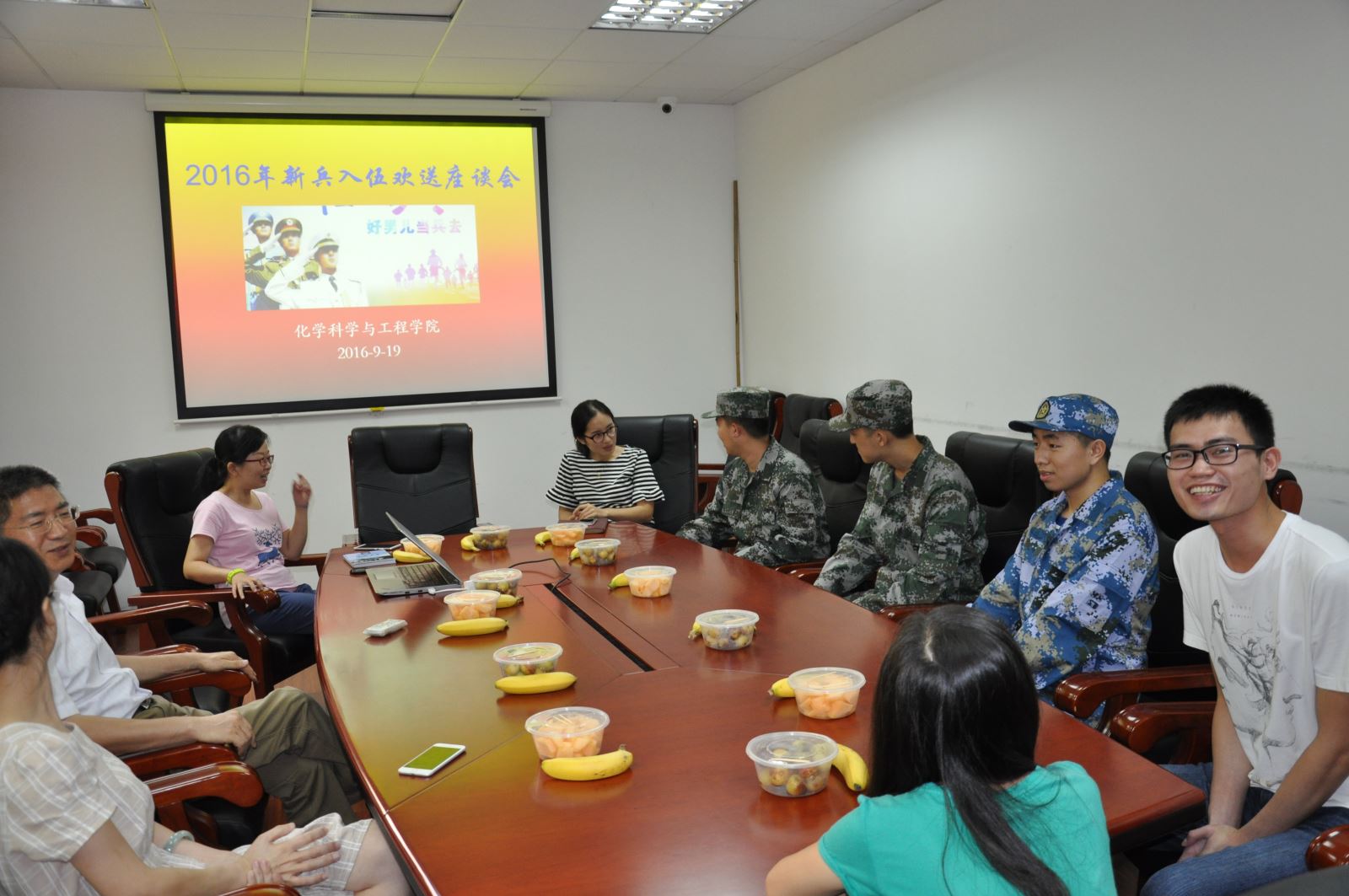 9月19日下午,我院在工程试验馆203会议室举办了2016年大学生新兵欢送会。学院党委书记王国强、副书记兼纪委书记相波、学院学生工作负责人、分团委负责人和班主任代表参加了座谈。我院即将奔赴部队的高祥云、王正明、许一帆三位同学及退伍大学生代表左合鹏与学院领导和老师们进行了轻松愉快的交流。