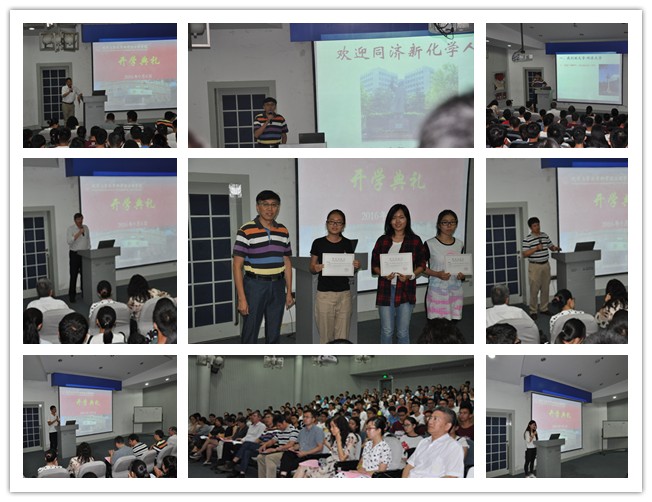 9月6日,学院开学典礼在瑞安楼二楼报告厅举行,学院党政负责人、班主任、教师代表和全体2016级新生参加了典礼。学院党委书记王国强主持典礼并对新生加入学院表示热烈的欢迎。学院院长、国家杰青张弛教授致辞,他首先对永利集团和yl9193永利集团进行了详细的介绍,特别对学院未来的发展规划和定位向新生们作出了深入的解读。结合学院未来的发展,提出对研究生将推出学术能力提升计划、对本科生将实行专业志向引领计划等计划提升学院人才培养质量,培养更多具有创新意识、能够服务社会发展、促进国家进步的杰出人才。刚刚到我校报到入职的教授Mark G. Humphrey应邀发言,他着重从对化学与社会发展、日常生活的紧密联系出发,向新生们展示了化学学科的重要意义和精彩趣味,鼓励新生们认真学习化学,投入化学研究,多出有价值的成果。田志新教授作为教师代表寄语新生,新成立的yl9193永利集团是一个充满活力、科研氛围浓厚,投入少而产出多的优质学院,而同济化学学科又是一个有着深厚历史底蕴的学科,这里产生过多位大师,经过几代同济化学人的努力,现在迎来了极好的发展机遇,新同学们既是幸运的,也需要把握机遇与同济化学学科发展同命运、共进步。2015级研究生王悦、2016级研究生唐汪洋、本科生张泽汉等分别作为老生代表和新生代表发言。王悦代表在校生欢迎学弟学妹们的加入,他用幽默的语言谈及了自己在同济化学度过的五年愉快时光,回顾了自己与同济化学共同进步的这些年,表示同学们值得拥有这样一个优秀的学院。作为同济本科毕业继续升入研究生的新同学,唐汪洋在回顾四年大学生活的同时展望了未来几年的奋斗规划,表示将再次启航踏上又一段征程。张泽汉同学则作为完全的新鲜人谈了自己对永利集团、对yl9193永利集团的认识,并表示将尽快适应新环境,及早确定新目标,迎接人生的新挑战。开学典礼上,院长张弛得教授为获得2016年永利集团新生奖学金的沈嘉寅、陆嘉寅和王易文三位同学颁发了获奖证书。当天上午,学院邀请校团委校园导游队的学长学姐带领本科新生参观校园,通过导游队同学的带领介绍,新生们对校园环境有了进一步的了解,特别是对校园中的各栋楼的功能、历史和相关故事都有了更加深刻的认识。