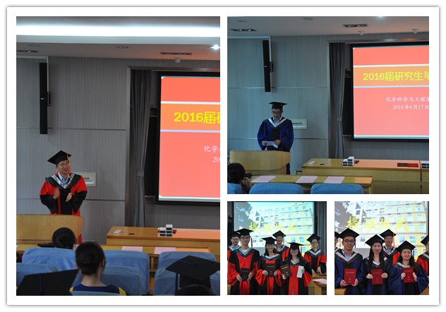 6月17日,yl9193永利集团2016届研究生毕业典礼在化学馆报告厅举行,全体毕业研究生和学院党政负责人、教师代表参加了毕业典礼。