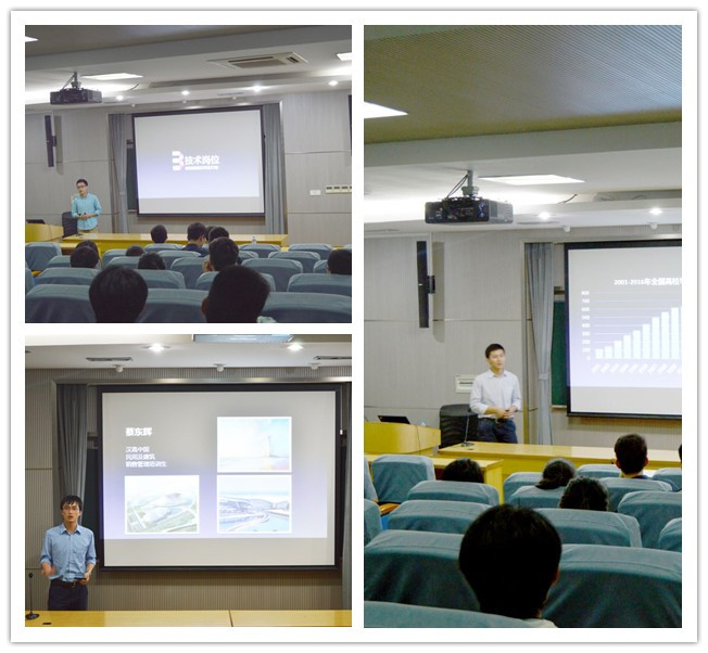 第一位分享嘉宾毛江毅概述了化学化工行业的求职情况和同学们的一些普遍问题。毛江毅,博士毕业于华东理工大学应用化学专业,现供职于丰益国际全球研发中心,担任新技术发展专家岗位。他首先介绍了化学化工专业学生毕业后找工作的方向,解释了国企、民企、外企、研究所、高校等等方向的区别,并用一些公司举了实例。他还简介了化学化工及其相关行业目前的发展情况和化学化工专业在上海及华东地区的就业机会。他总结了一些同学们对于销售、研发等等具体岗位的问题,并由此引出了后两位嘉宾的分享内容。第二位分享嘉宾是化学系2014年毕业的物理化学专业优秀毕业生蔡东辉,现任职于汉高中国,从事AC销售工作。他详细介绍了销售这个岗位,改变了同学们对于销售岗位的一般看法。他结合自己的求职经历,给同学们求职的时间安排和准备工作提出了建议。他还概括了销售岗位最重要的因素是为人处事技巧和沟通技能。第三位分享嘉宾潘昌艺为同学们详细解读技术岗位的特点。潘昌艺,毕业于华东理工大学化学与分子工程学院,曾在科莱恩化工(中国)担任技术管理培训生和产品专家,现已自己创业。他首先介绍了自己在技术岗位上的经历,包括总结文献专利技术、参与精益生产管理项目、建立运营实验室等等,从而说明了技术岗位的要求并阐述了适合成长的技术岗位的特点以及这个岗位的发展空间。他最后以一句话勉励同学们,即“要与众不同,需要无比寂寞的勤奋”。