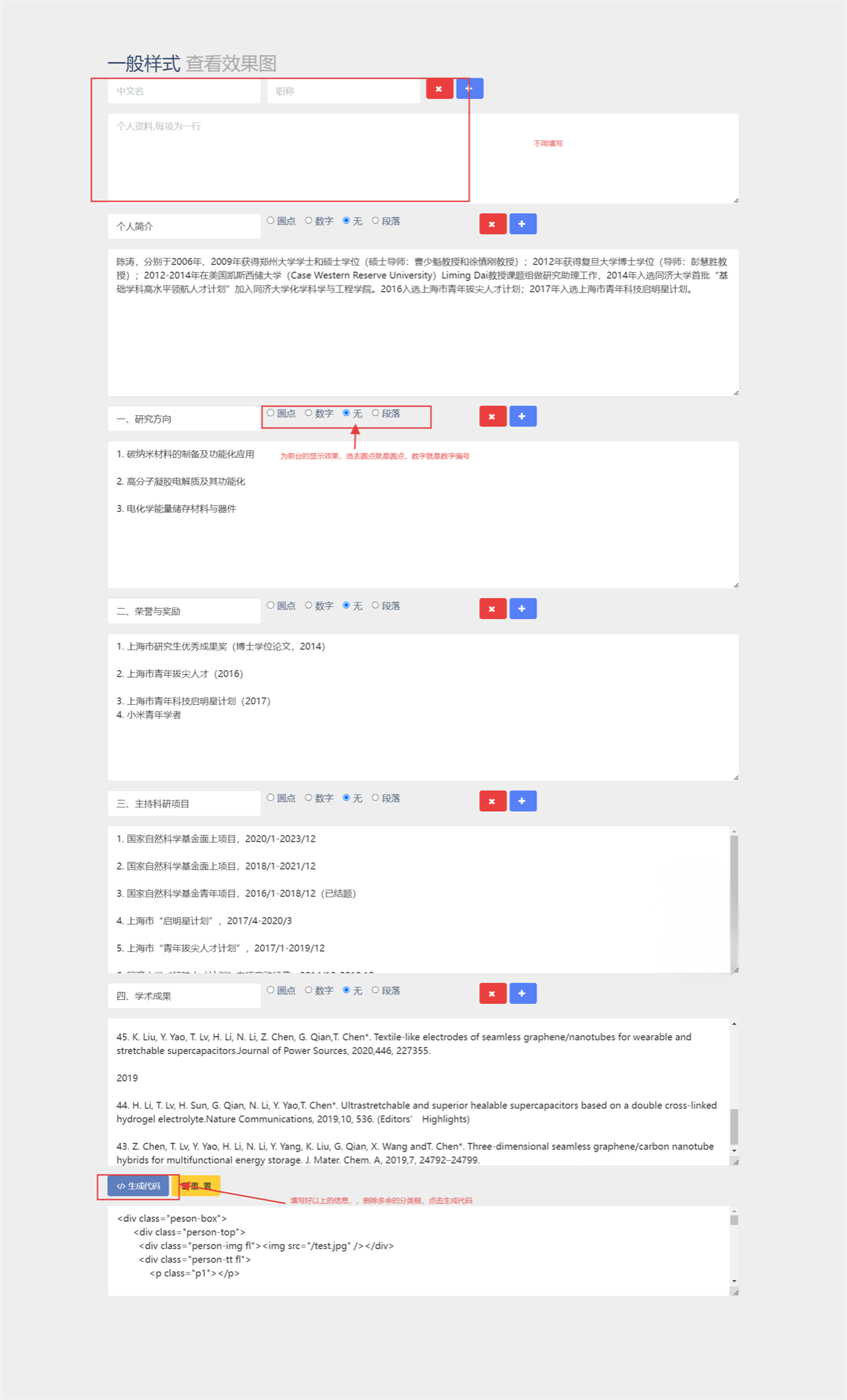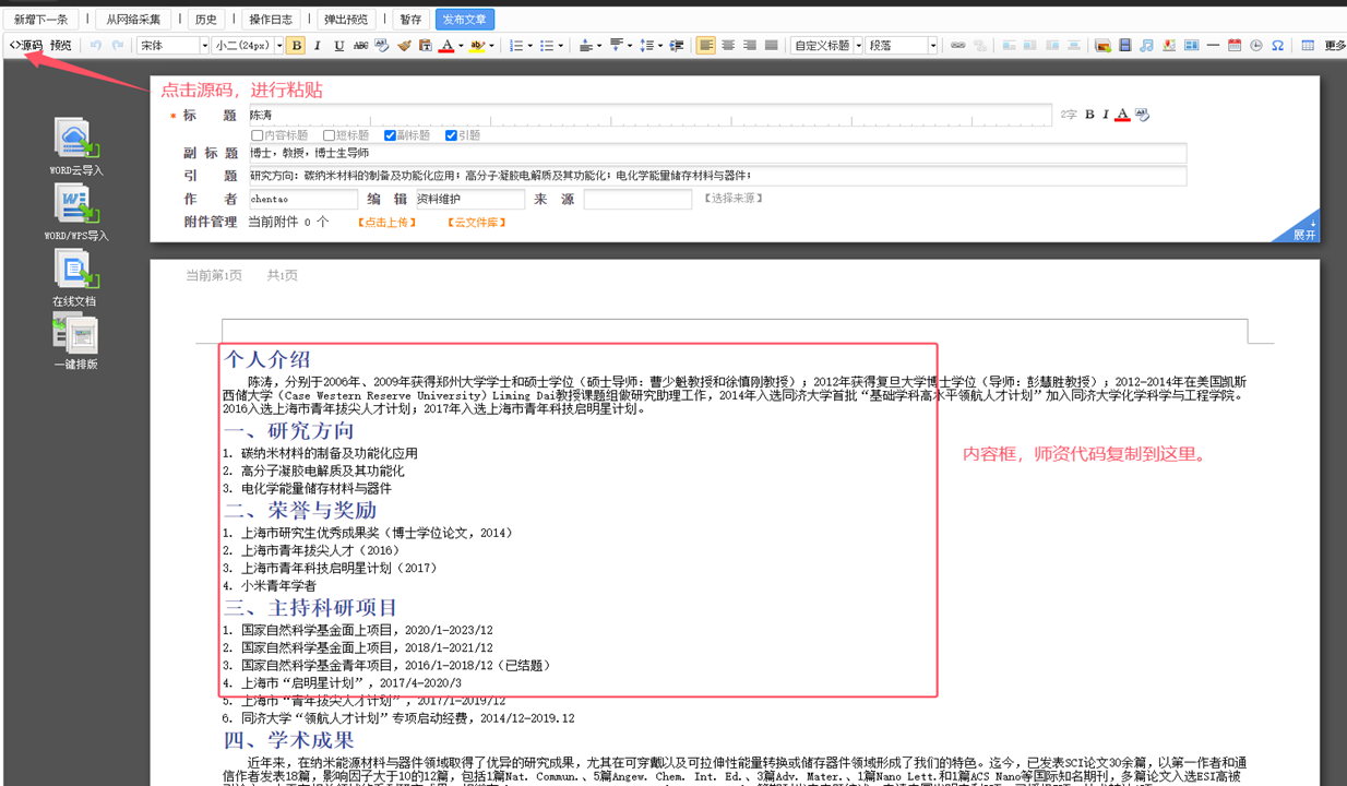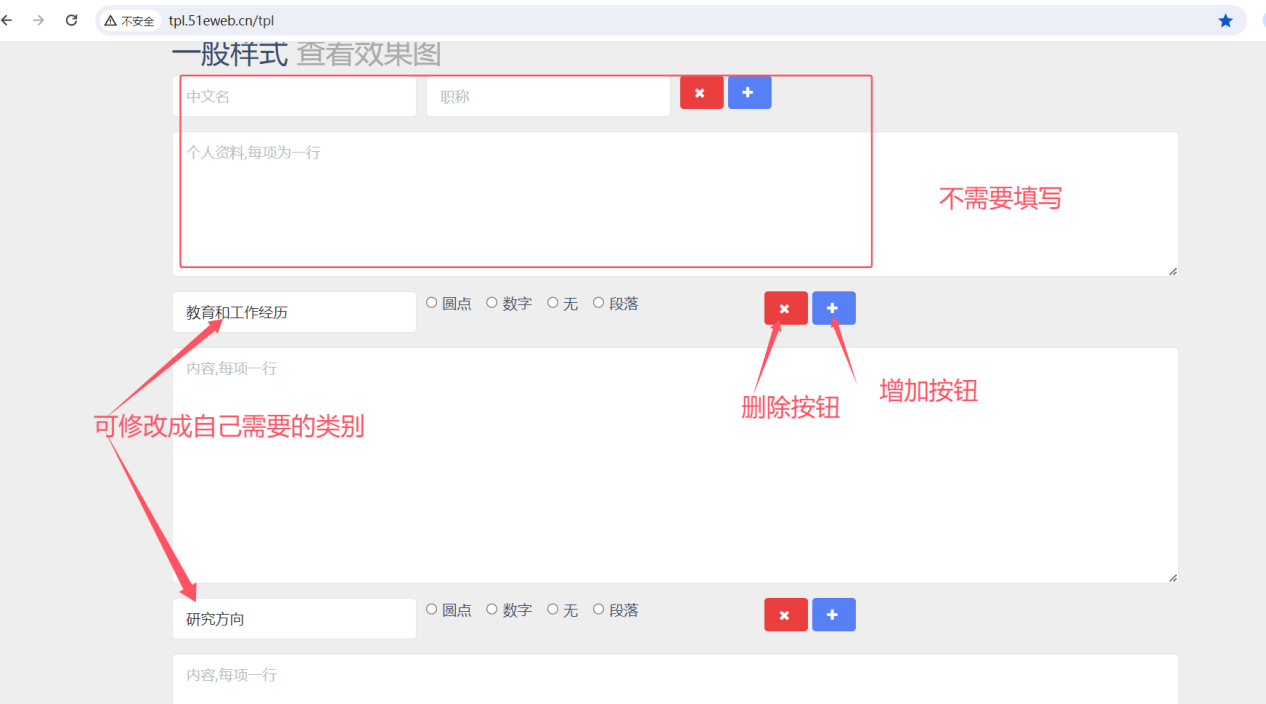 4.如果需要改变原有内容版式和代码的,可使用如下“师资工具”填写,师资工具地址:http://tpl.51eweb.cn:8600/tpl