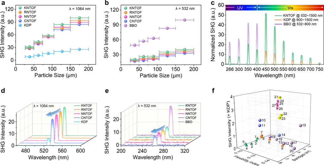 Nonlinear optical (NLO) crystals, known for their unique frequency conversion capabilities, are critical optical materials for obtaining ultraviolet (UV) and deep-ultraviolet (DUV) laser sources. They hold significant practical importance in modern high-tech fields such as national defense, semiconductor lithography, photonic communications, precision medicine, and additive manufacturing. Currently commercialized representative UV NLO crystals include β-BaB2O4 (BBO), LiB3O5 (LBO), and BaMgF4. However, high-performance DUV NLO crystals remain scarce. Due to the interdependent requirements of the three key optical properties of crystal materials, namely UV absorption cutoff edge, frequency doubling response, and birefringence, on the microstructure of crystals, designing and preparing nonlinear optical crystals that can achieve efficient UV and even DUV light output is an important scientific challenge and enormous challenge faced by researchers in related fields.