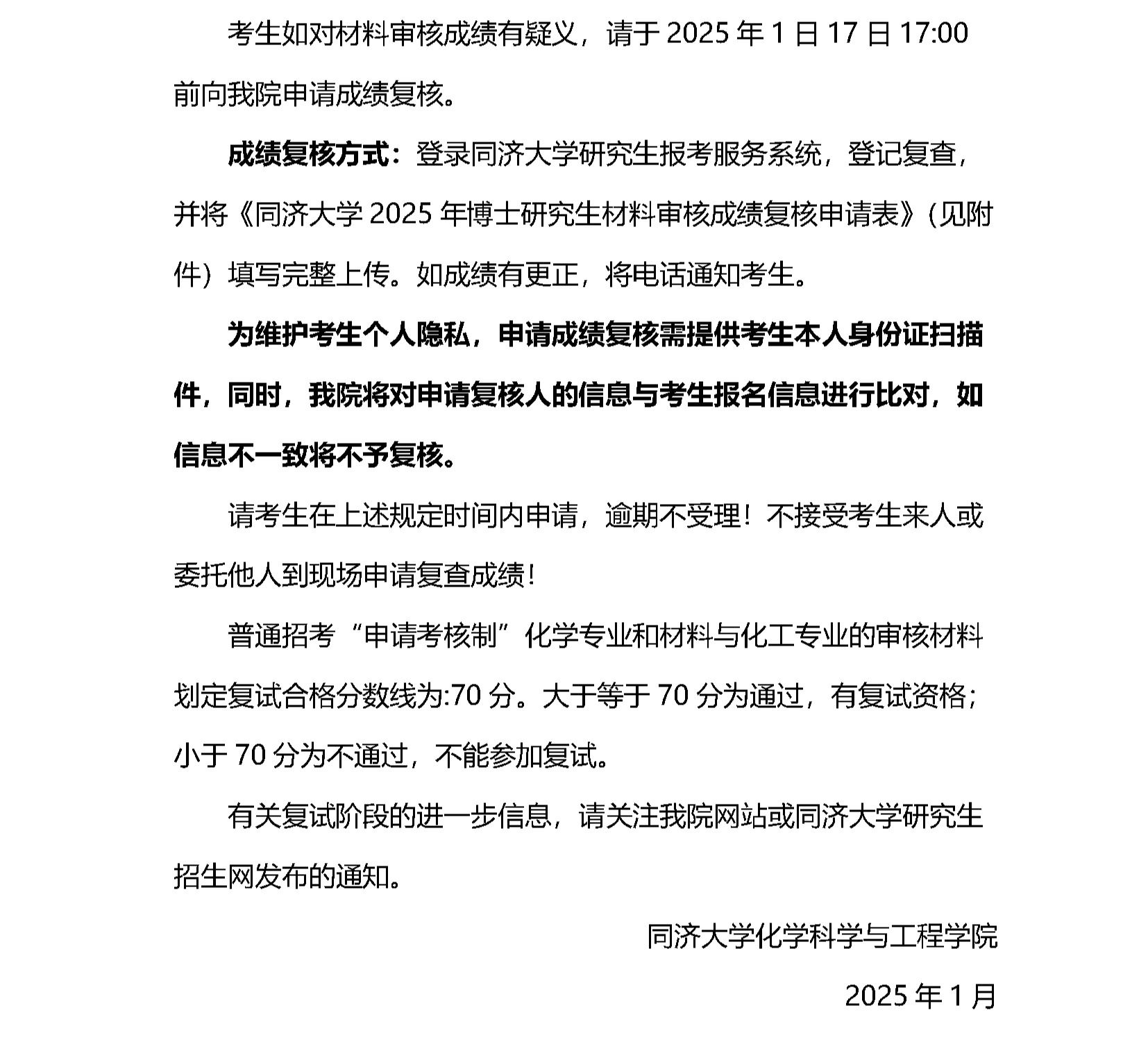 关于我院2025年第二批博士招生材料审核成绩及结论查询及复查通知