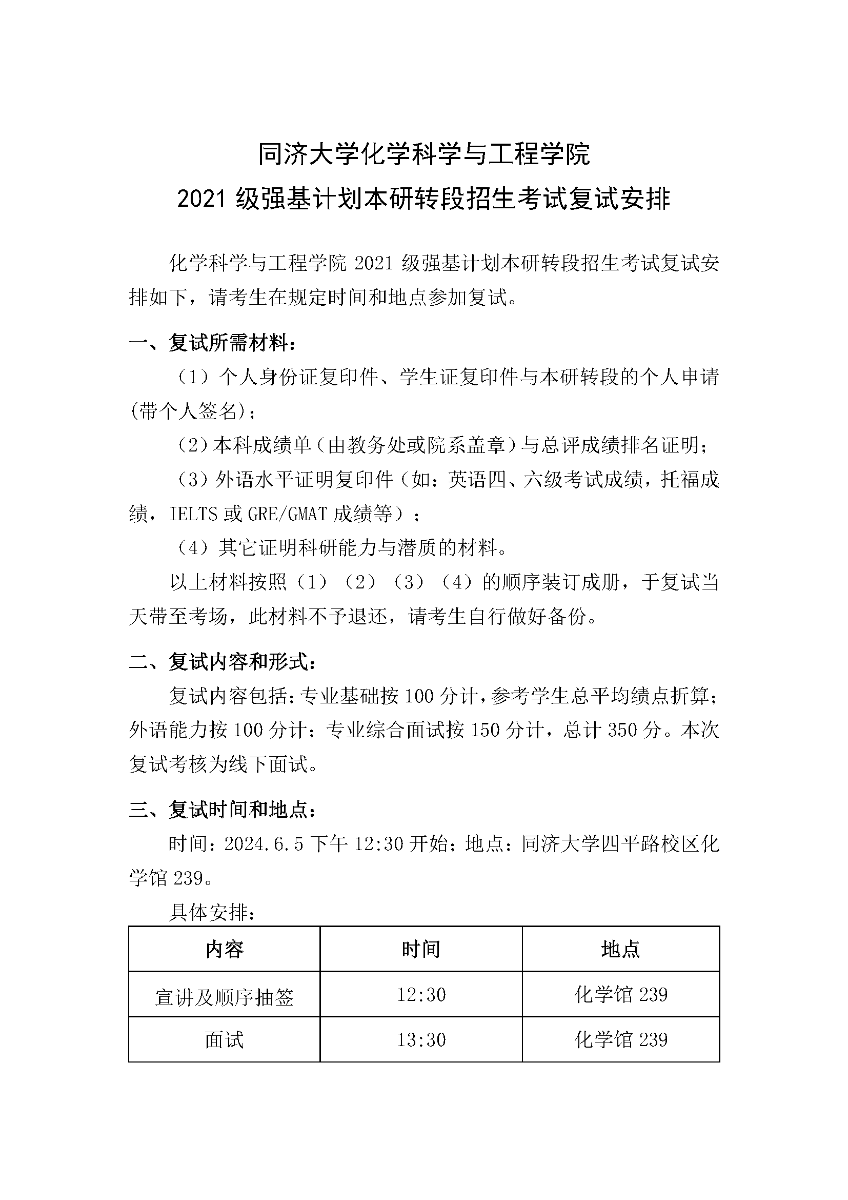 yl9193永利集团2021级强基计划本研转段招生考试复试安排