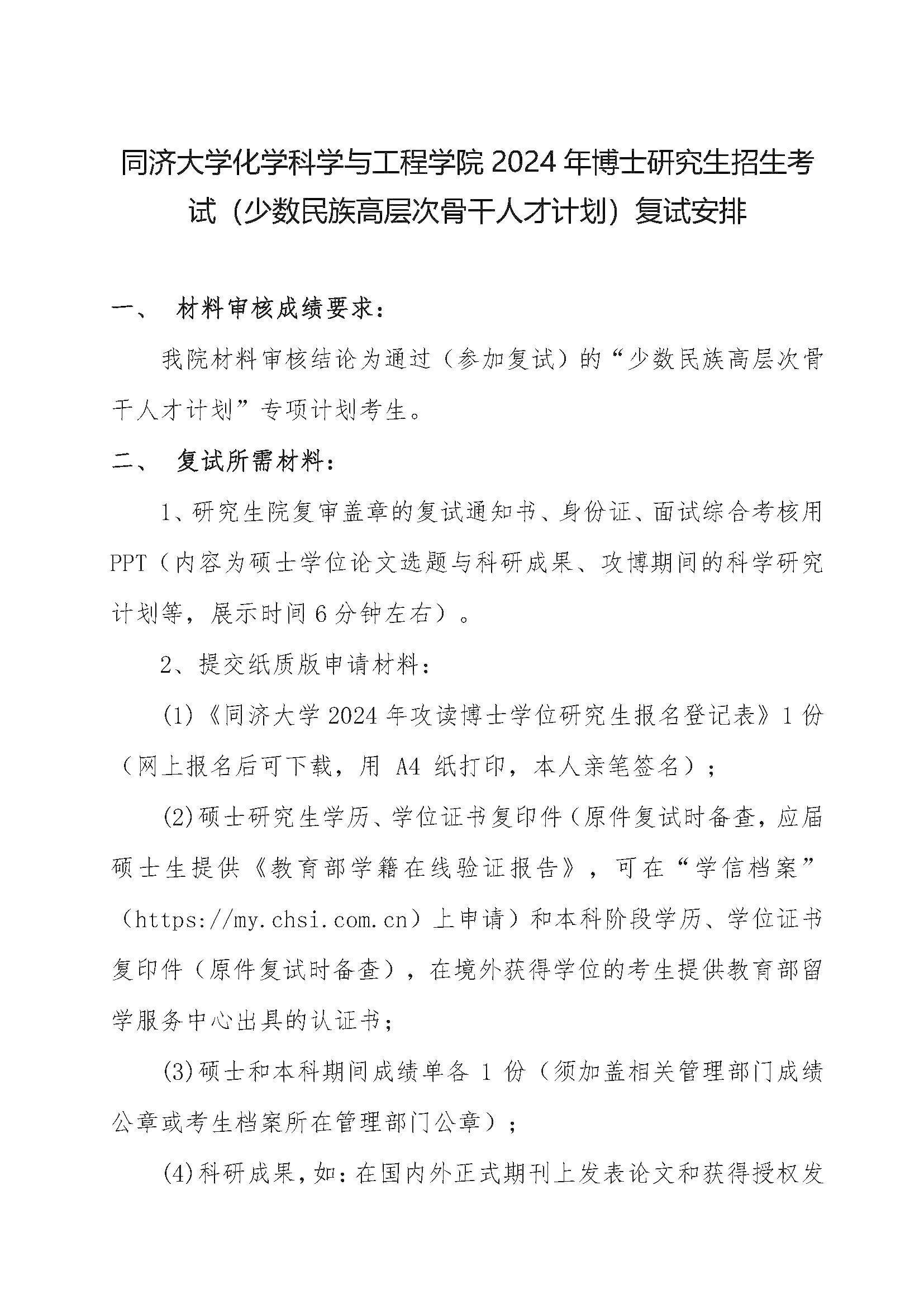 yl9193永利集团2024年博士研究生招生考试(少数民族高层次骨干人才计划)复试安排