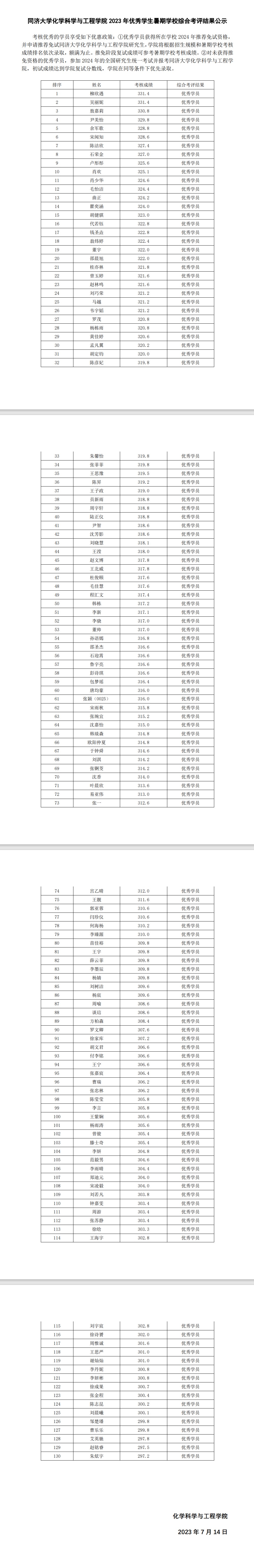 2023年优秀学生暑期学校综合考评结果公示
