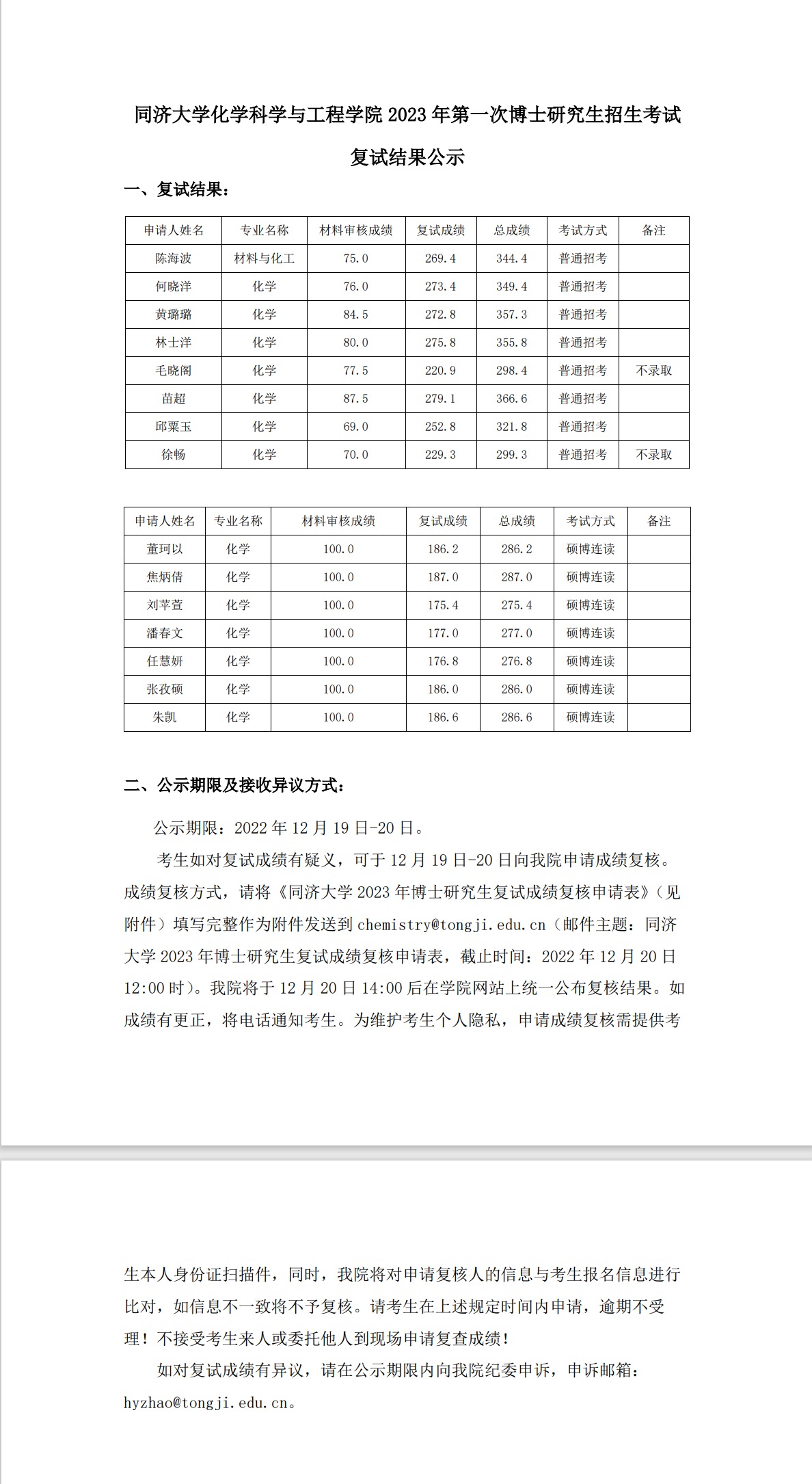 2023年第一次博士研究生招生考试复试结果公示