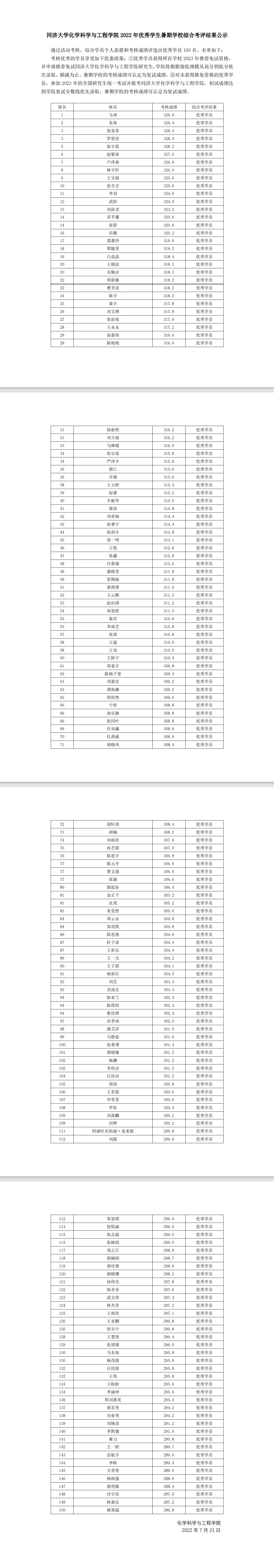 2022年优秀学生暑期学校综合考评结果公示