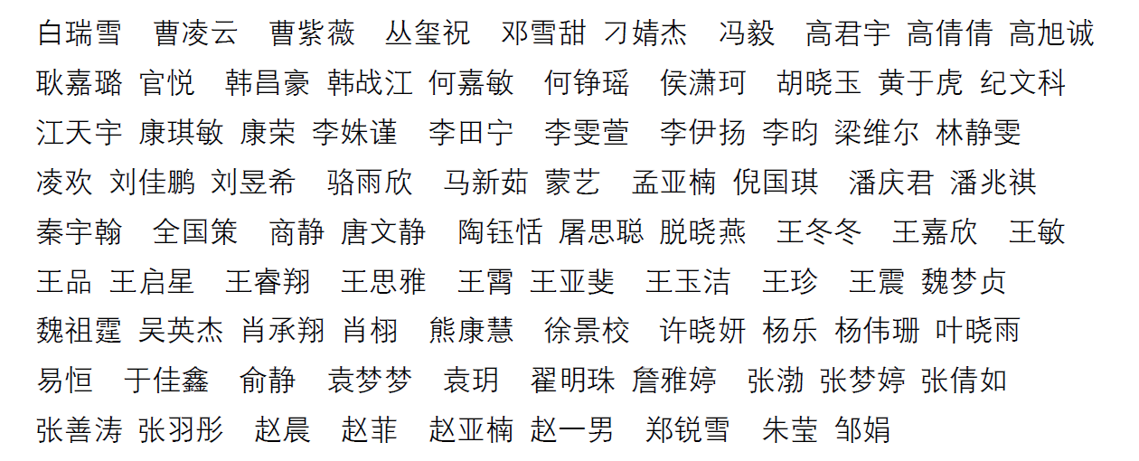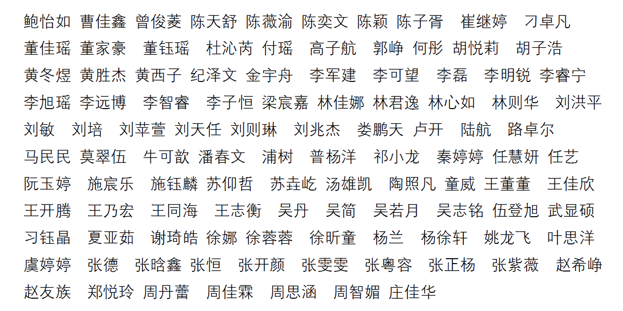 一、根据综合材料评价,经学院招生领导小组审核通过,确定第一批入选名单107名(按姓氏拼音排序):